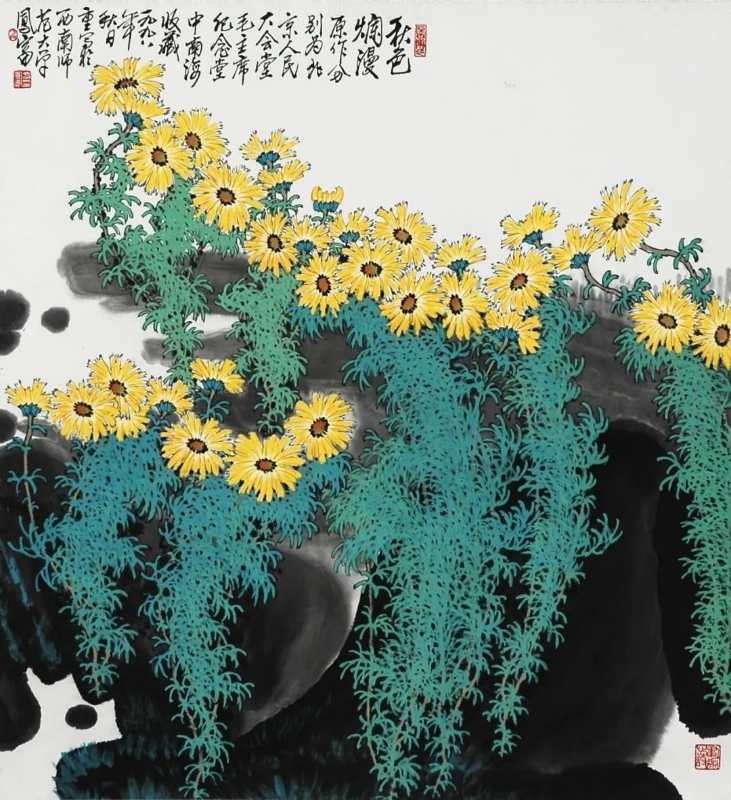 今年疫情防控期间,方凤富教授所创作的《百燕欢舞》,也在本次画展现场首次展出,这幅画吸引众人长时间驻足观摩参观拍照,成为本次画展的另一焦点。画中140只燕子在金灿灿的菊花上欢腾、飞舞。值得一提的是,这140只燕子形态各异,栩栩如生。