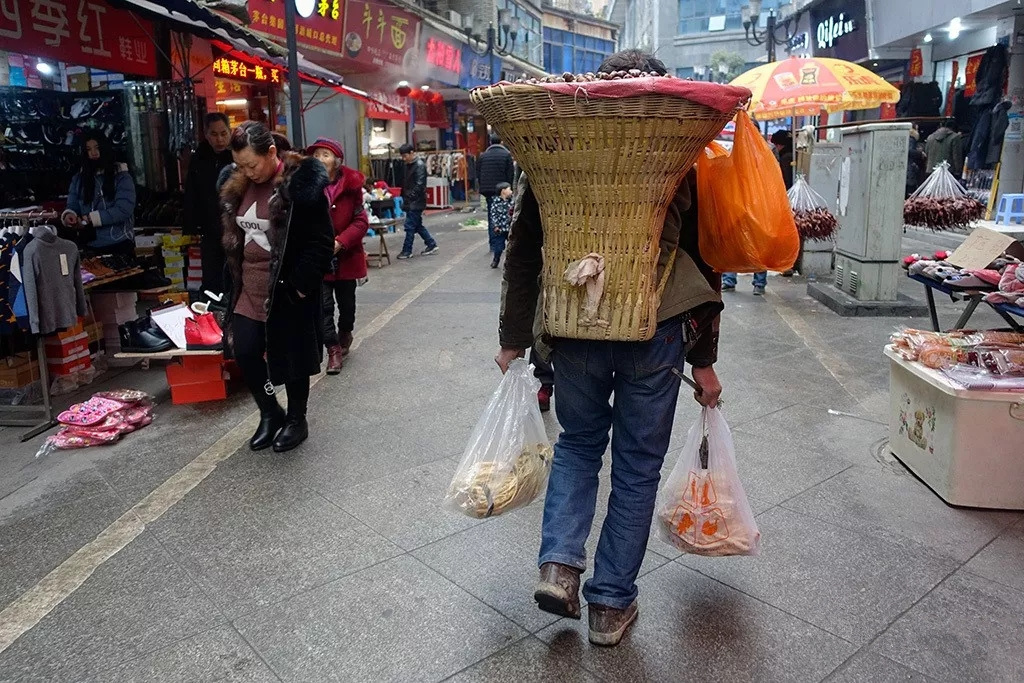 城口县葛城街道一位乡民,背着自产的土特产上街赶场。张其辉 摄