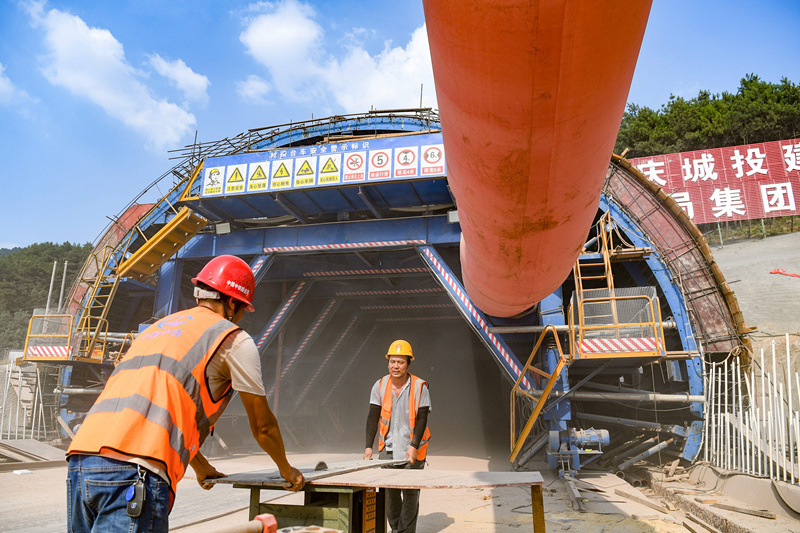 8月4日,金凤隧道的施工人员不惧严峻“烤”验,加紧施工,为实现早日通车挥洒汗水。