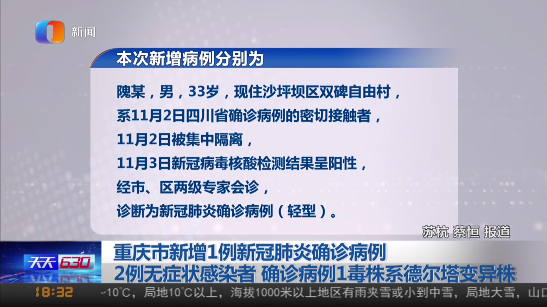 重庆市新增1例新冠肺炎确诊病例 2例无症状感染者 确诊病例1毒株系德尔塔变异株