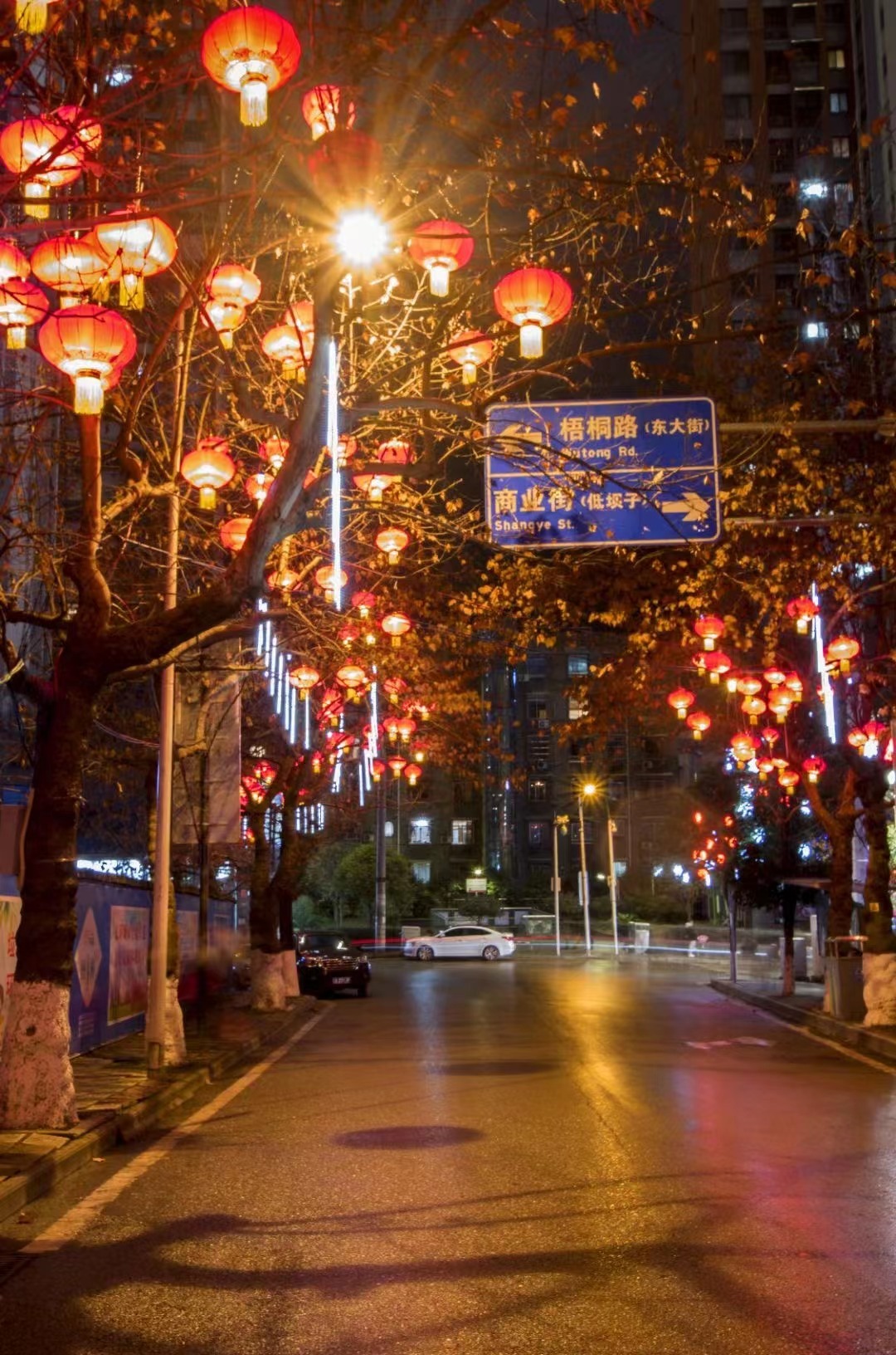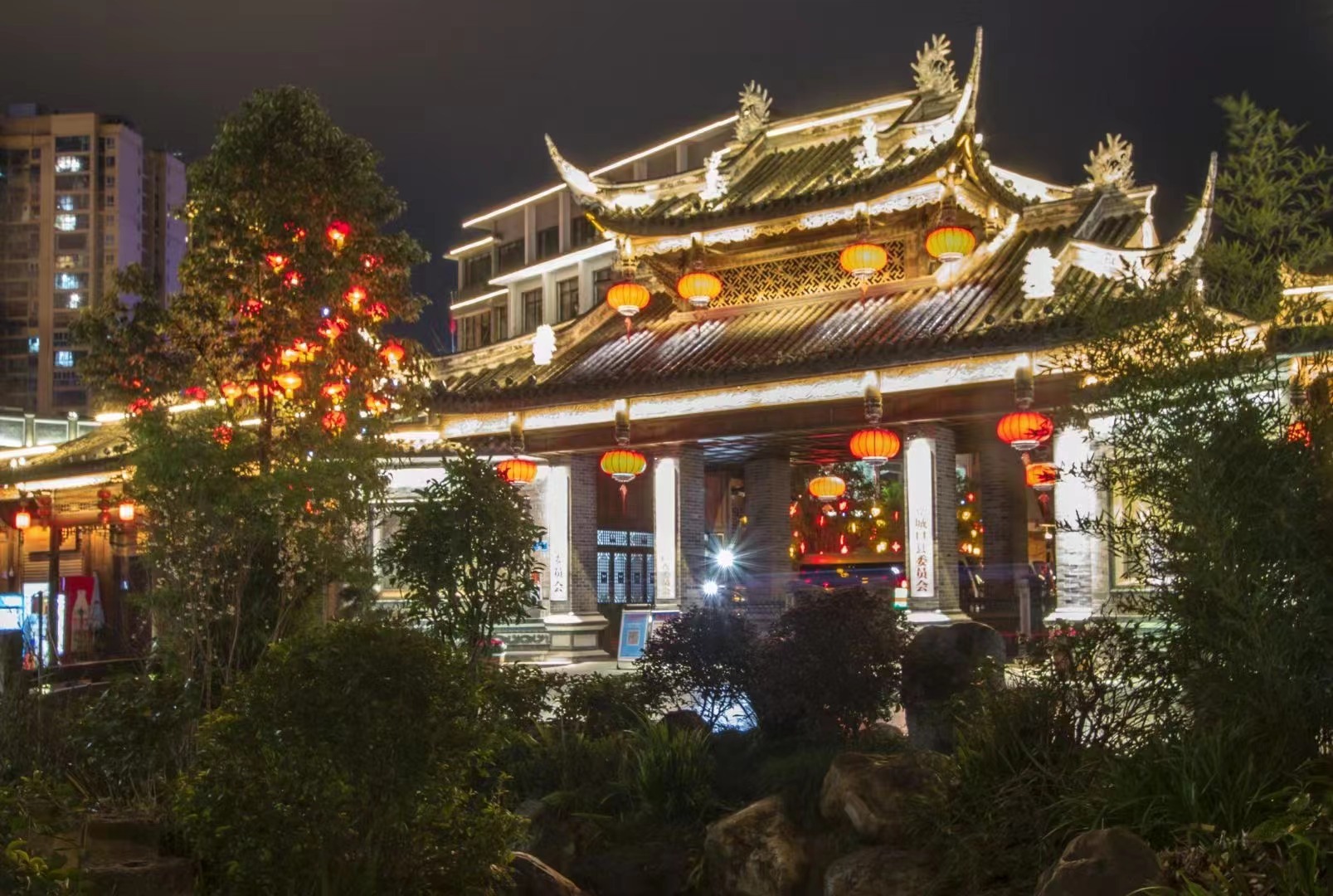 灯笼把夜晚衬托得如此美丽。(汤守华 摄)