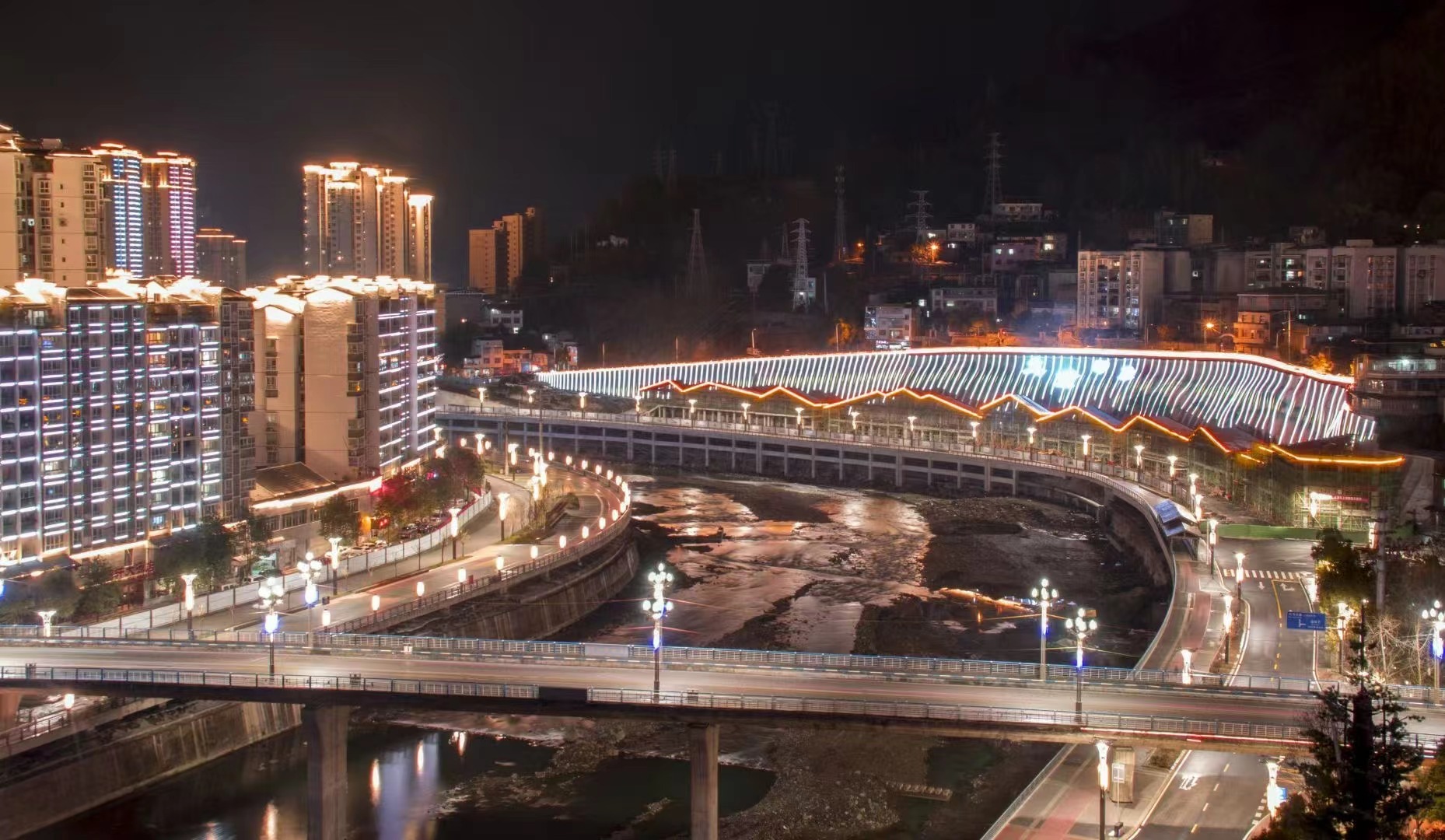 夜幕降临,华灯初上,流光溢彩。(汤守华 摄)