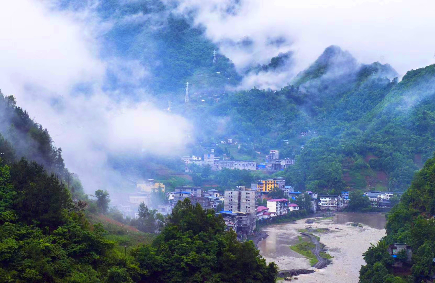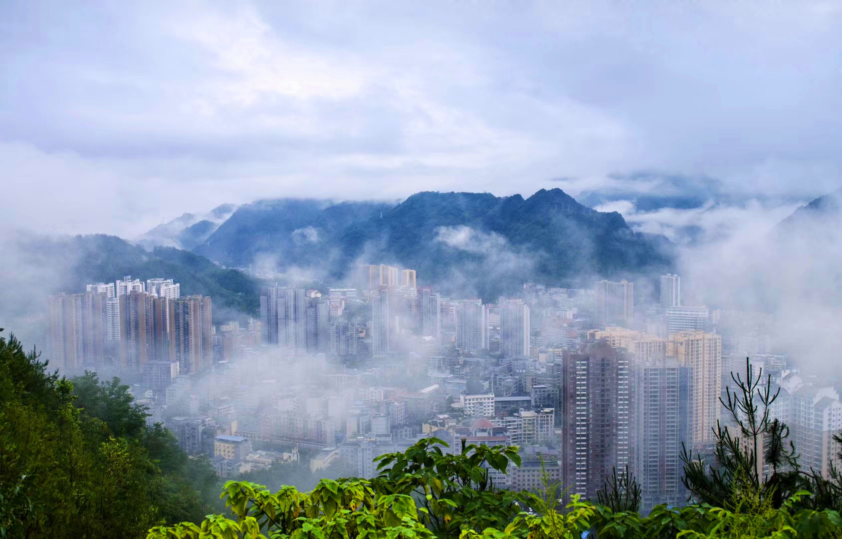 城市在云雾中若隐若现。拍摄于重庆市城口县葛城街道。王国庆 摄
