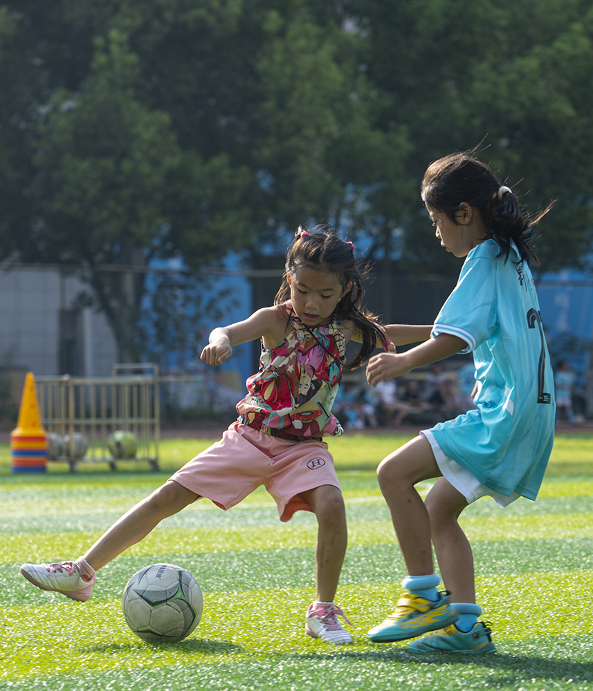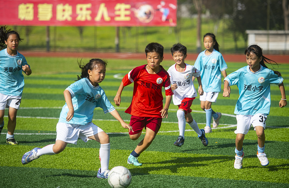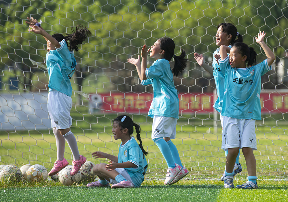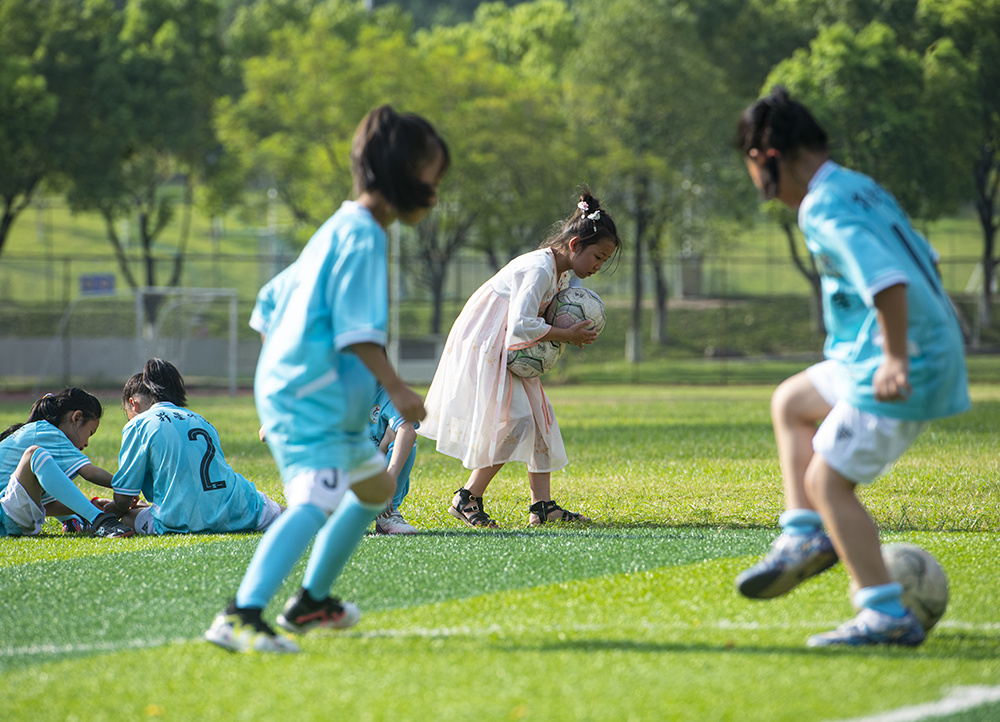 妹妹踢球,姐姐捡球。冉孟军 摄