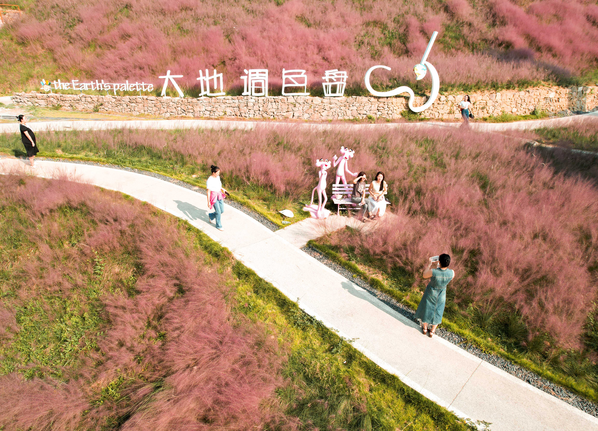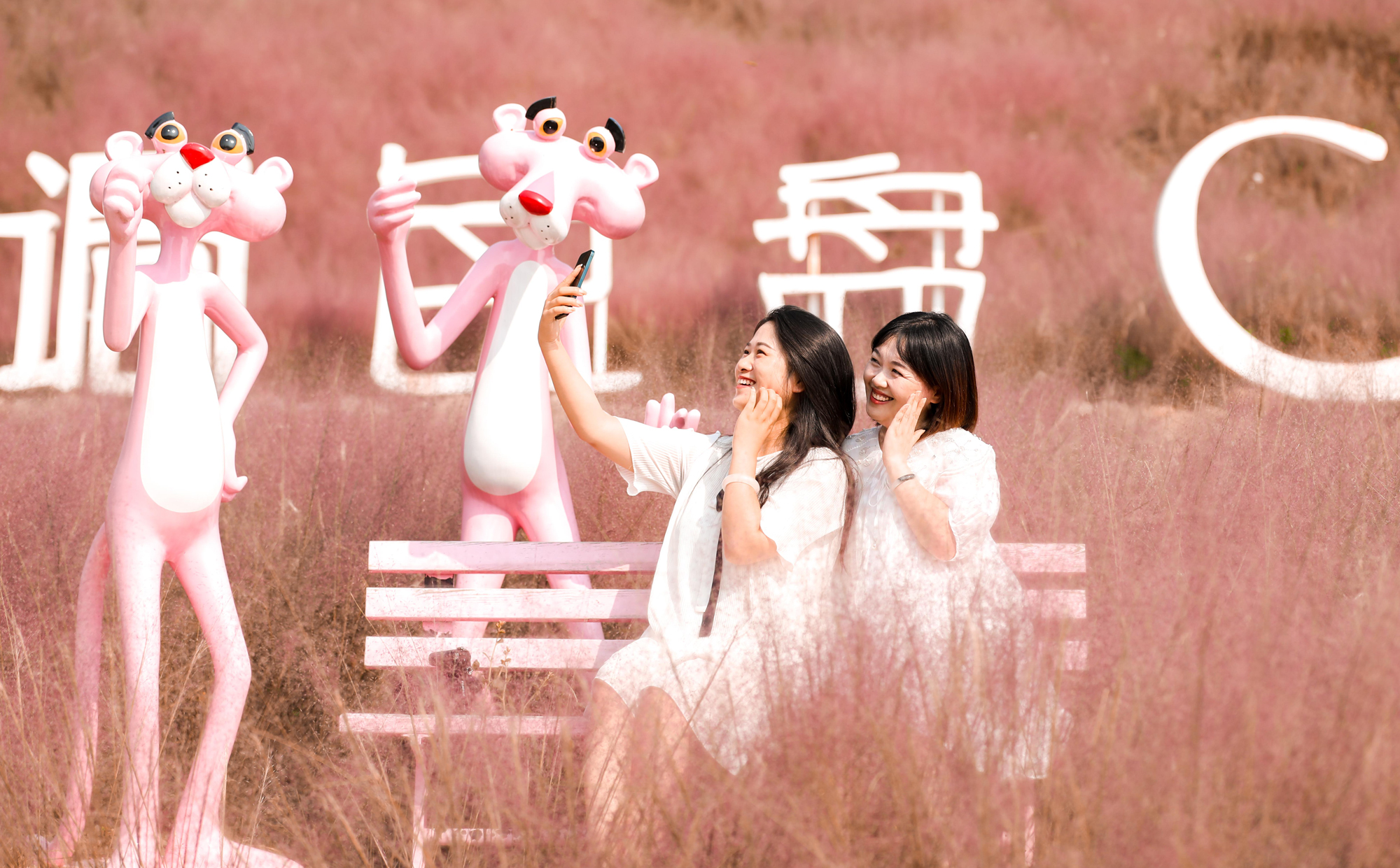 粉黛成了游客们拍照的最佳背景。记者 龚长浩 摄