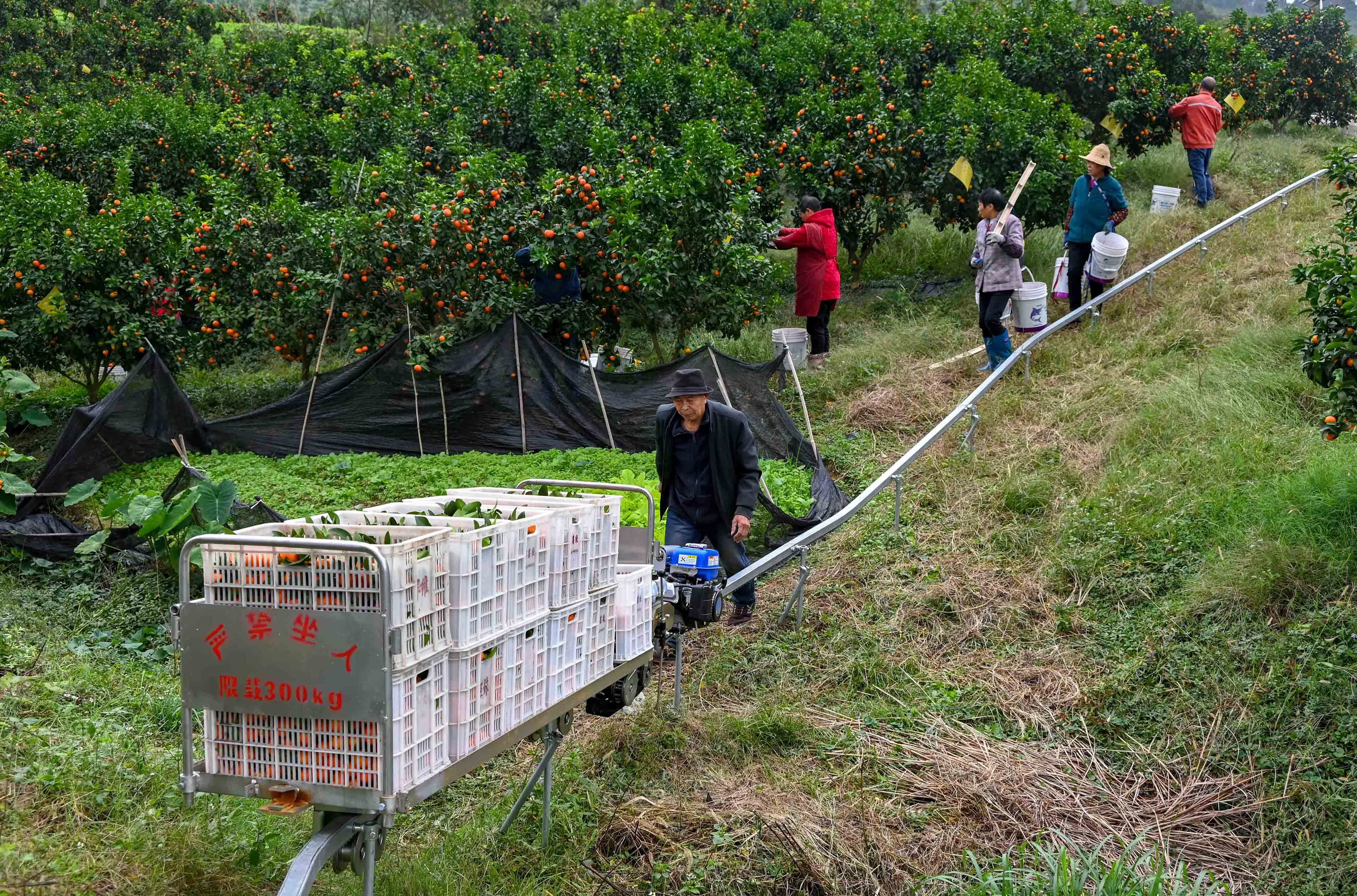 “小火车”来来回回,运输砂糖橘。付作侨 摄