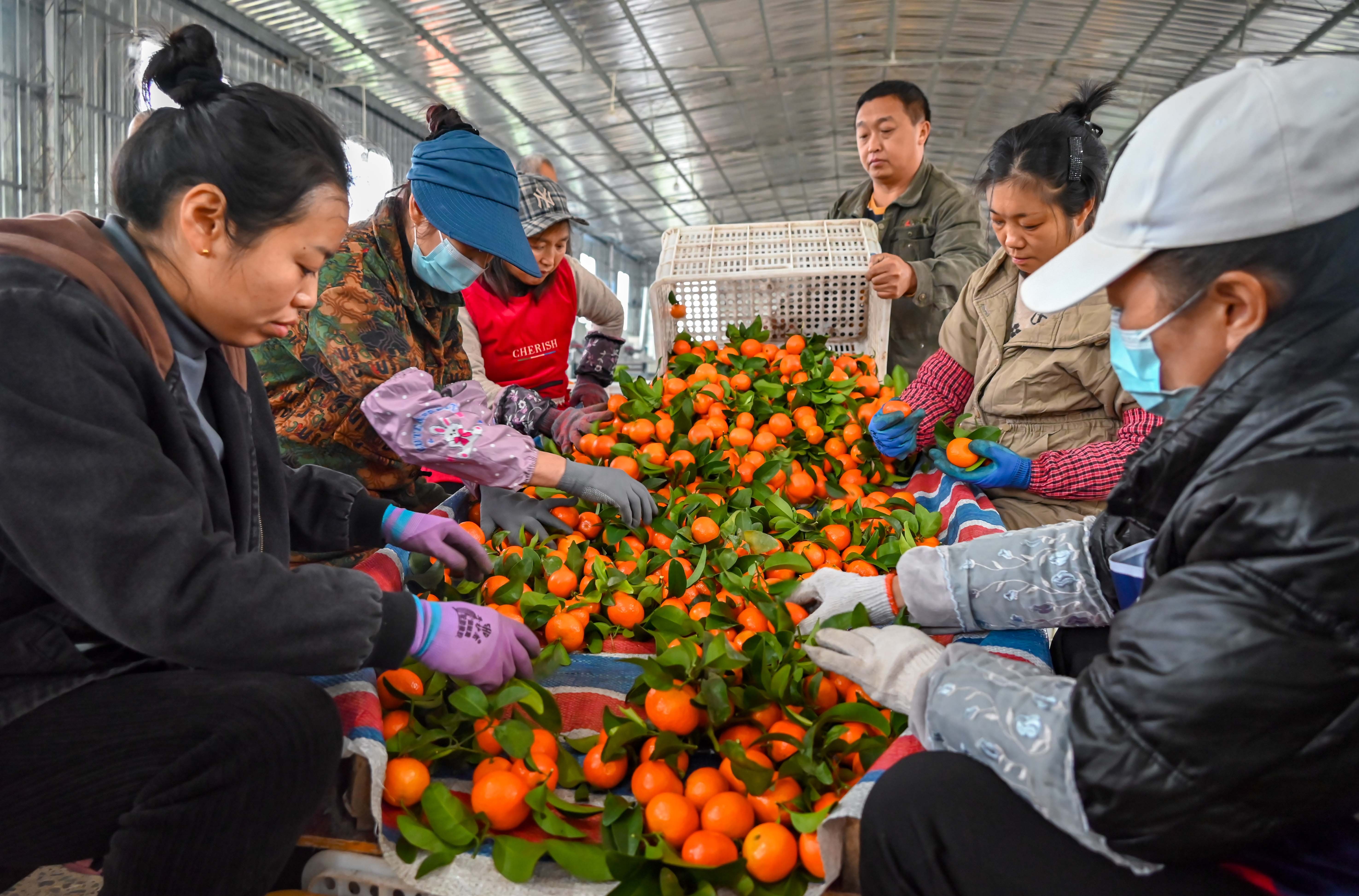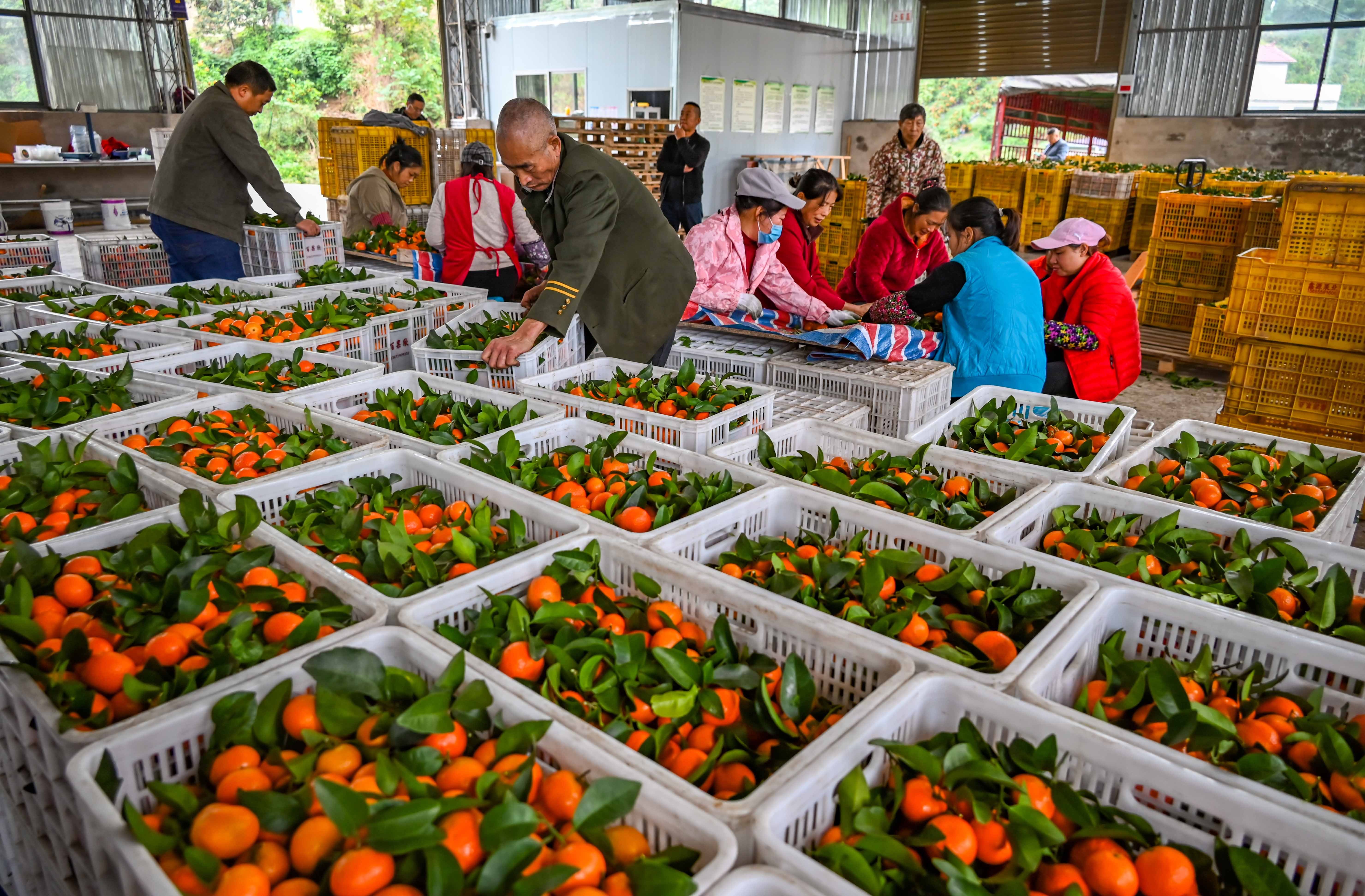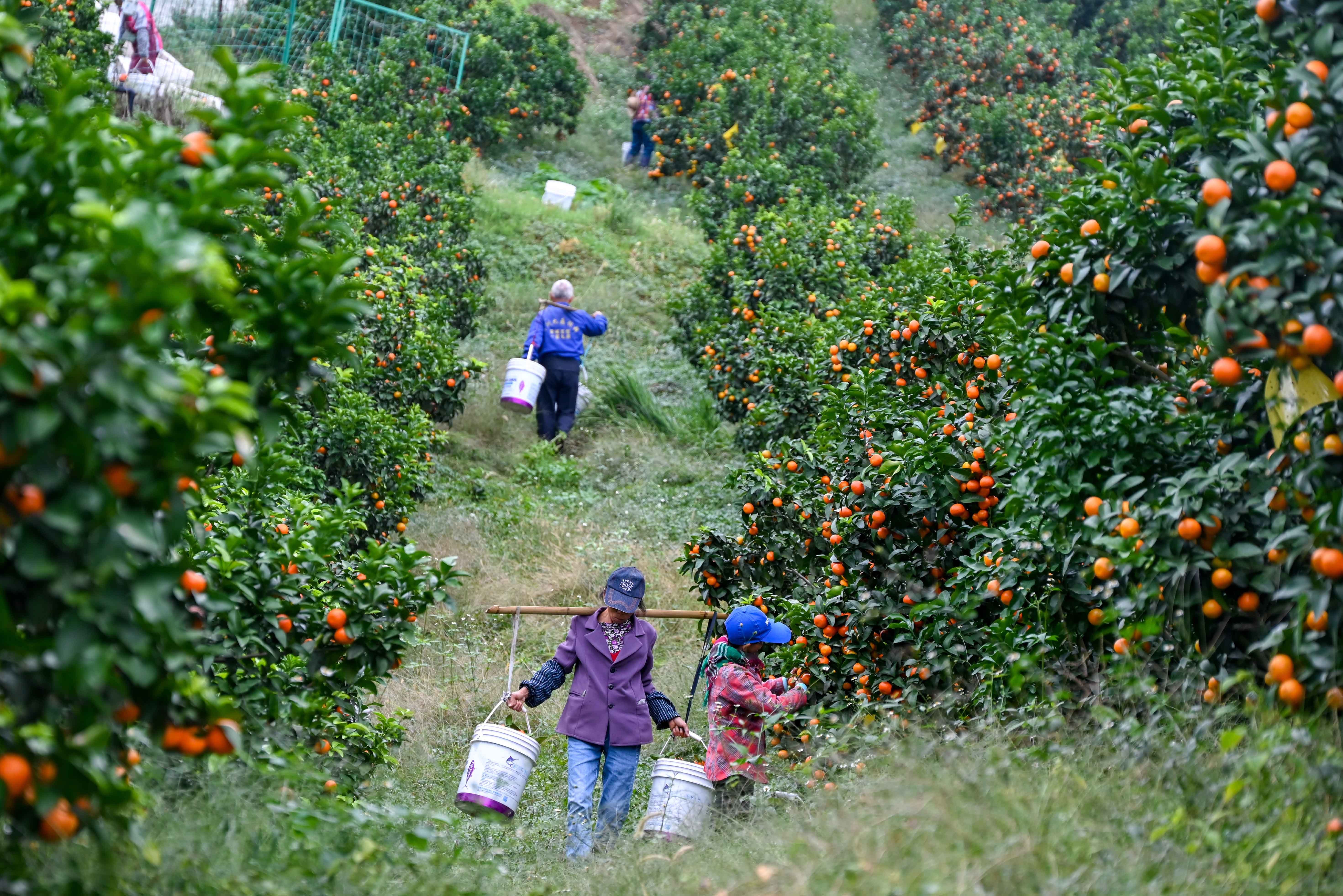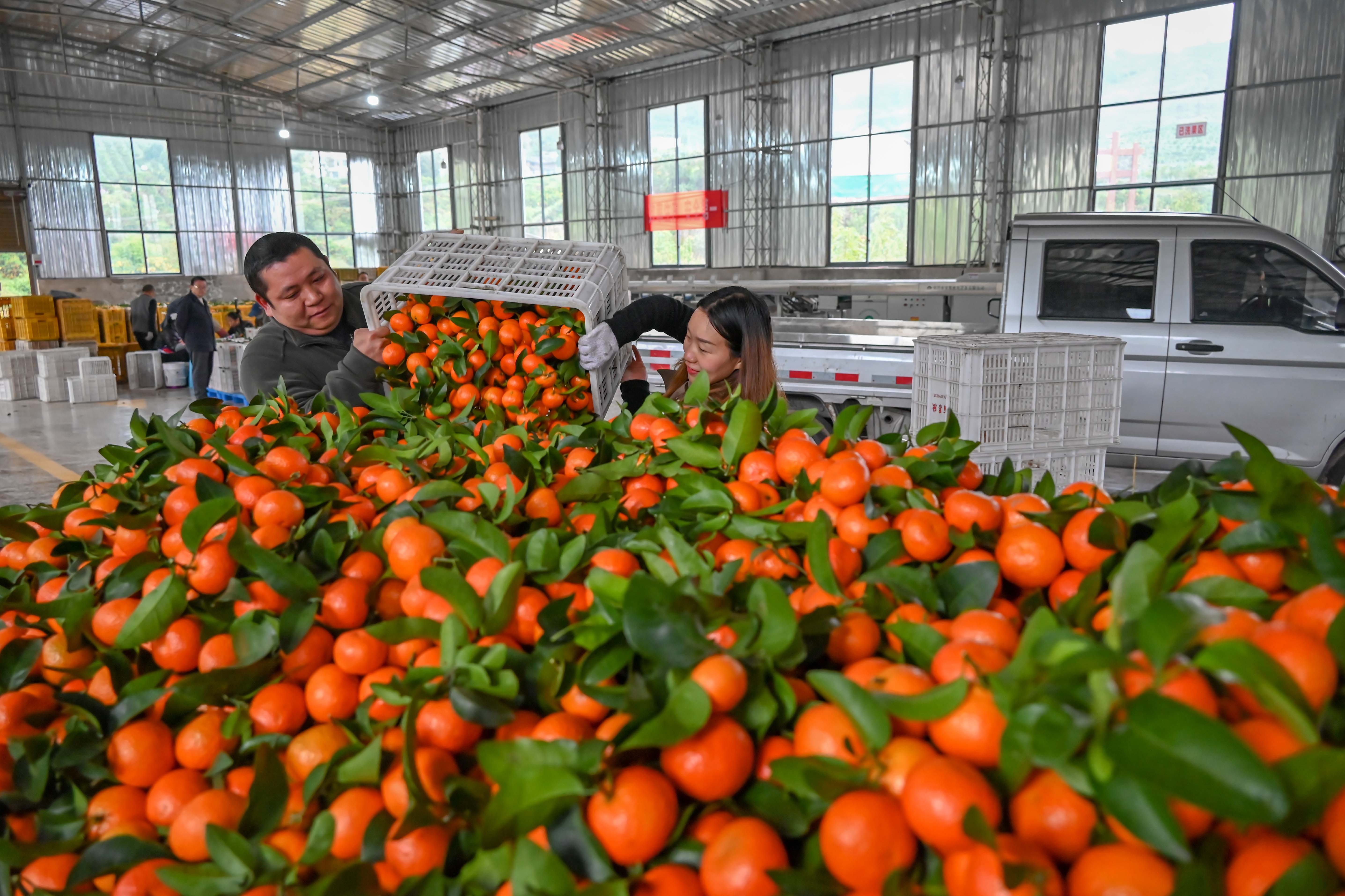 初冬时节,万州区溪口乡玉竹村,砂糖橘喜迎丰收。果园内,村民忙着采摘、转运;分拣中心内,村民选果、装筐,忙着装车运往全国各地……“甜蜜”订单源源不断。溪口乡沿江、沿山布局农业产业,按照“公司+农户”的模式,引进业主发展金秋砂糖橘、贵妃枇杷、沃柑、椪柑等特色种植业24000余亩。付作侨 摄