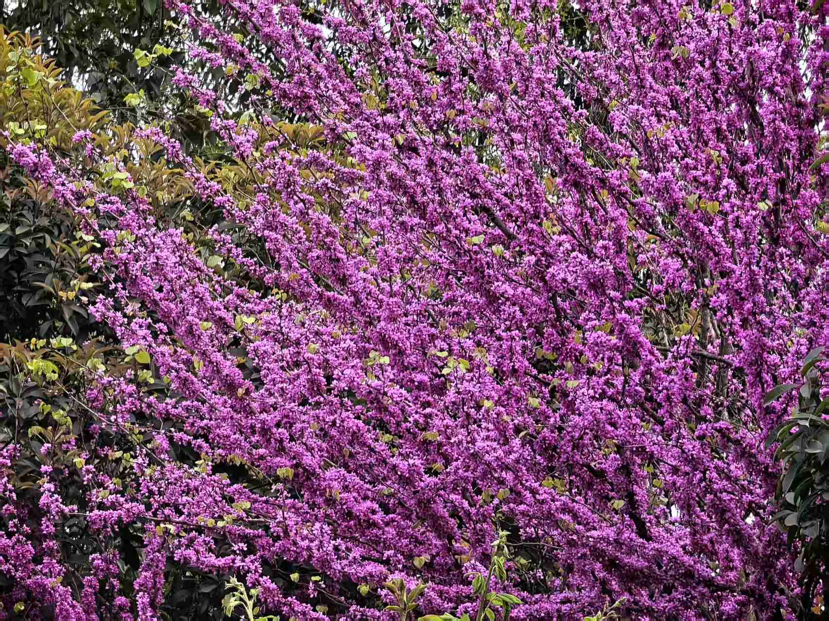 紫荆树形优美,早春繁花似锦,秋季叶色变黄,冬季枝干苍劲,适合孤植、丛植于庭院、公园或作为行道树。