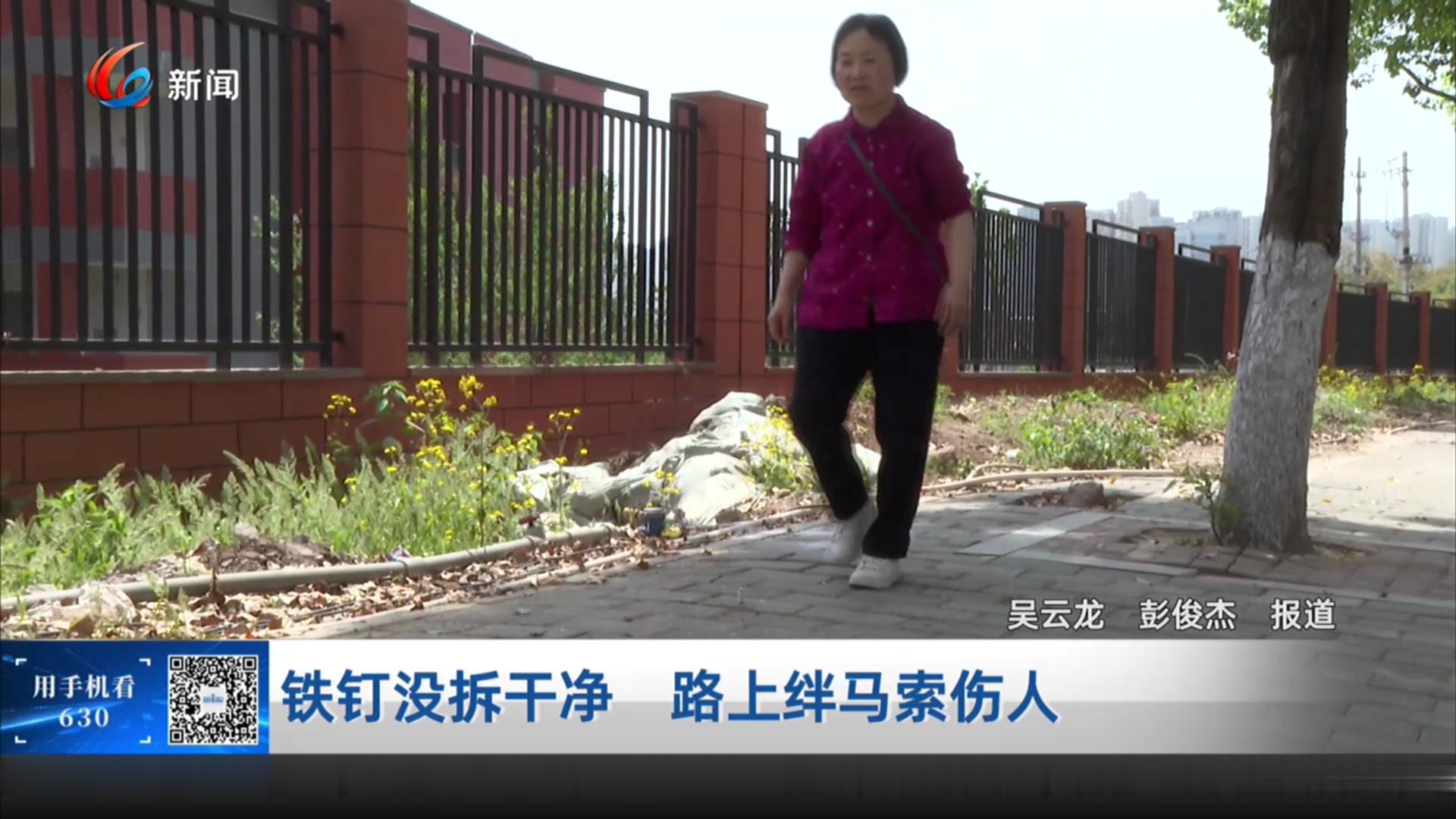 接孙女回家的路上,市民郭阿姨踢到了人行道上的铁钉,重重地朝前摔了下去。郭阿姨希望,市政部门能尽快清理路面上的铁钉,避免更多人“中招”。