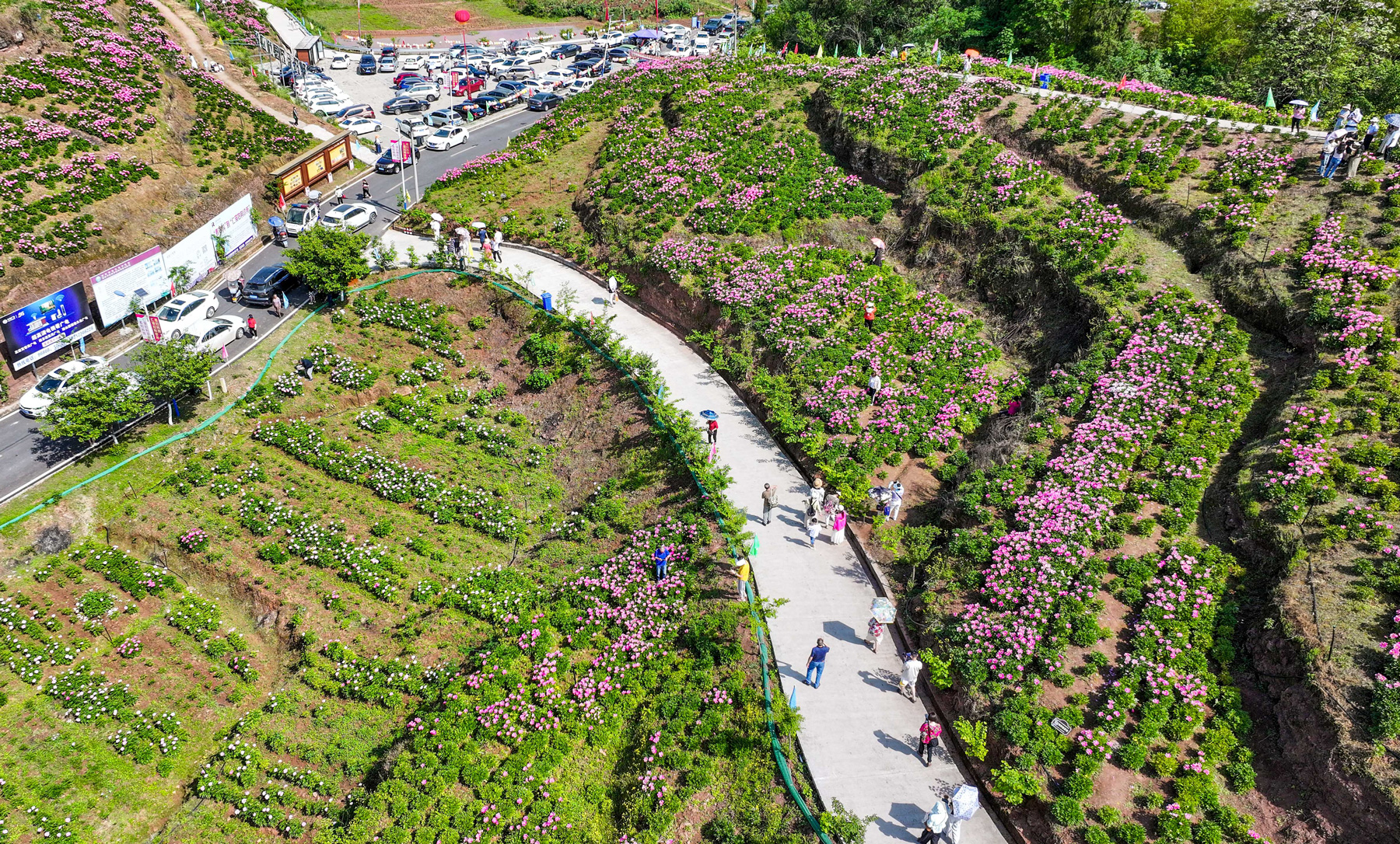 4月20日,重庆市垫江县曹回镇徐白村芍药花基地内,大片芍药花竞相绽放,美不胜收,吸引许多游人前来赏花游玩。记者 龚长浩 摄