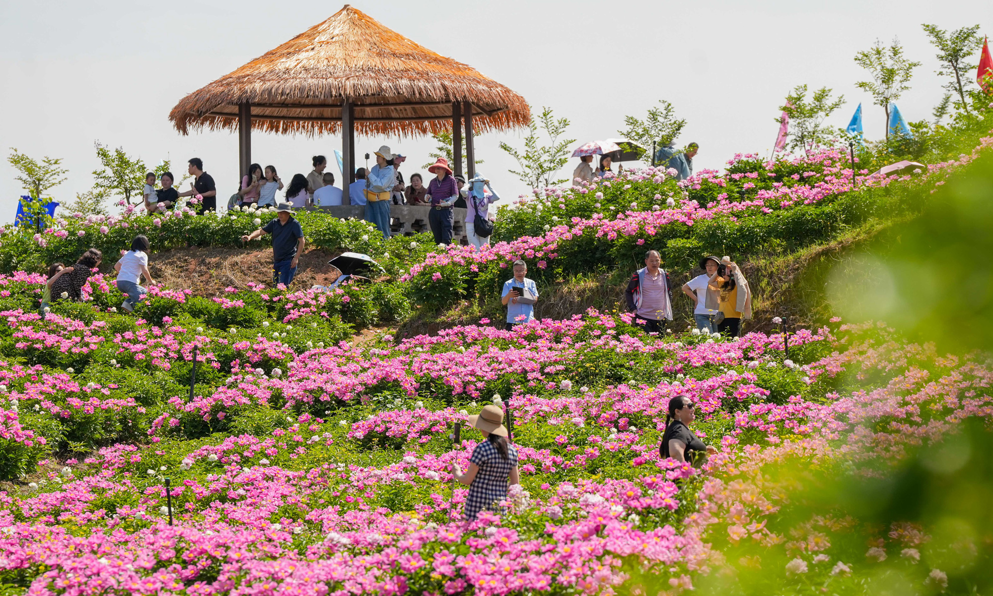 近年来,曹回镇积极探索发展新路径,将美丽乡村建设与“赏花经济”深度融合,重点培育以芍药花为主的“赏花经济”产业。通过科学规划和精心打造,如今的徐白村芍药花基地已成为当地一张亮丽的生态名片。记者 龚长浩 摄