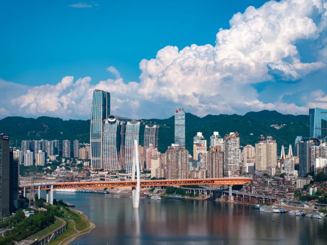 ▲6月28日,渝中区嘉陵江边,蓝天白云下的城市美不胜收。记者 郑宇 摄/视觉重庆