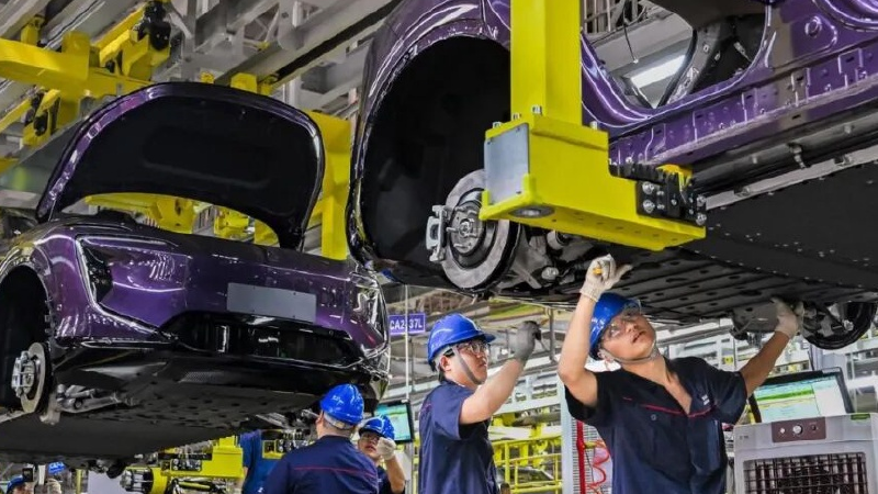 2025年6月26日,位于原渝北区的长安汽车数智工厂,工人在底盘线作业。记者 张锦辉 摄/视觉重庆