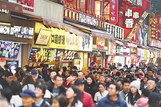 ▲2月17日,重庆解放碑美食街,游人如织。记者 谢智强 摄/视觉重庆