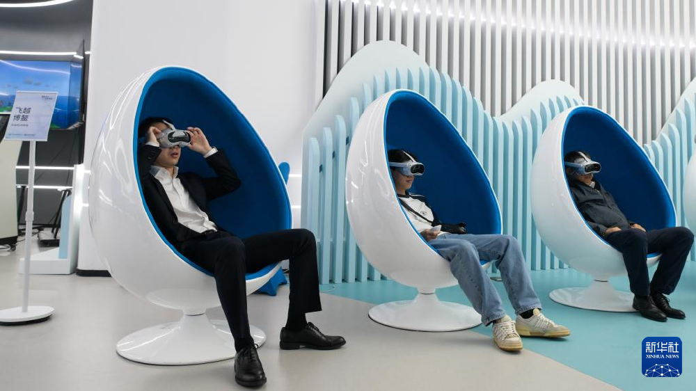 ▲3月19日,观众在“一带一路”主题数字展上沉浸式体验“飞越博鳌”。记者 杨冠宇摄/新华社