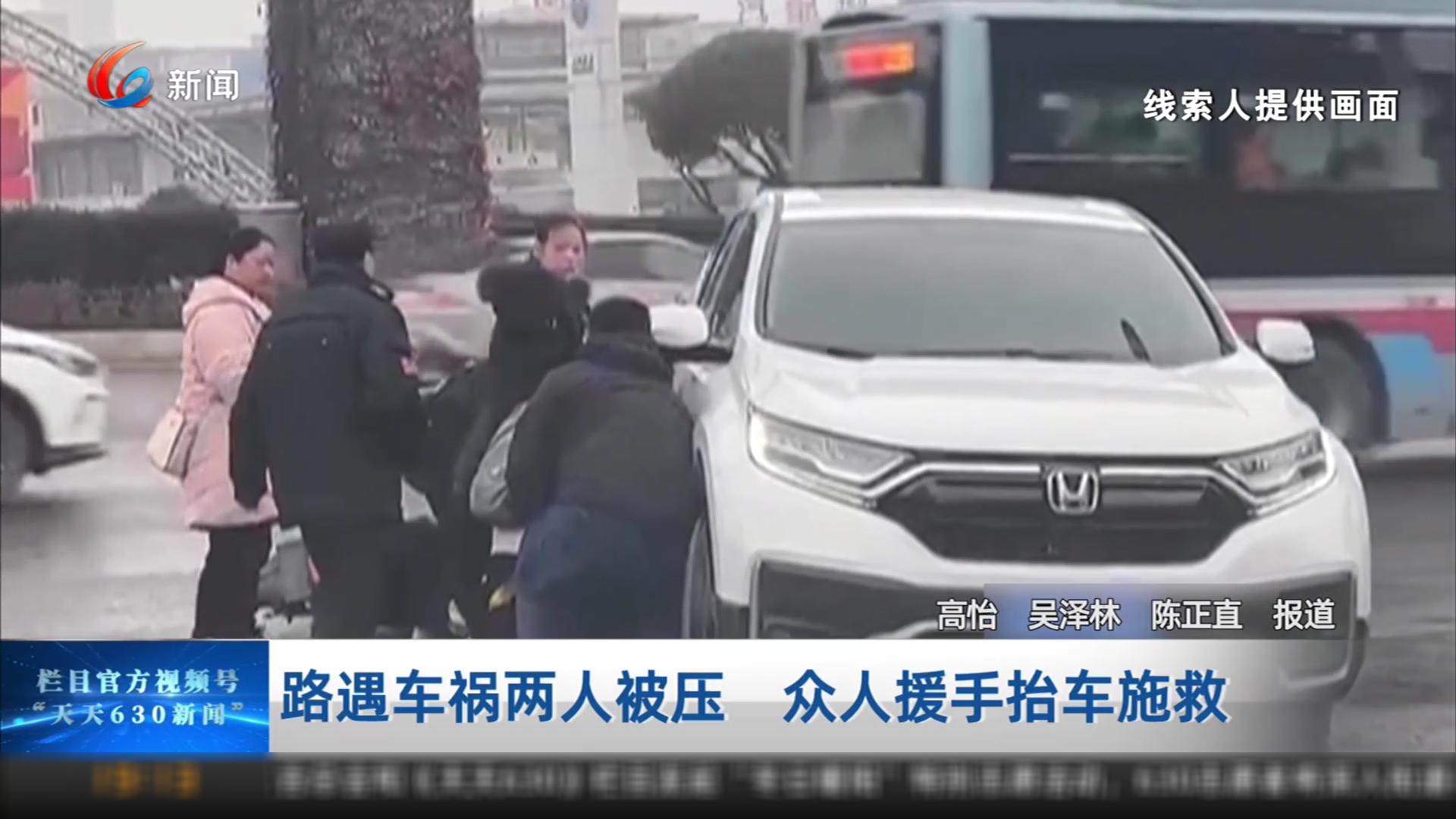 视频中,一辆电瓶车倒在白色suv后面,十几位市民将车辆右侧抬起,将车轮下被压住的两人拉出来。今天上午,记者找到了当时参与救援的伯永常,他告诉记者,他是叠彩城小区的保安,事情发生时正是早高峰。