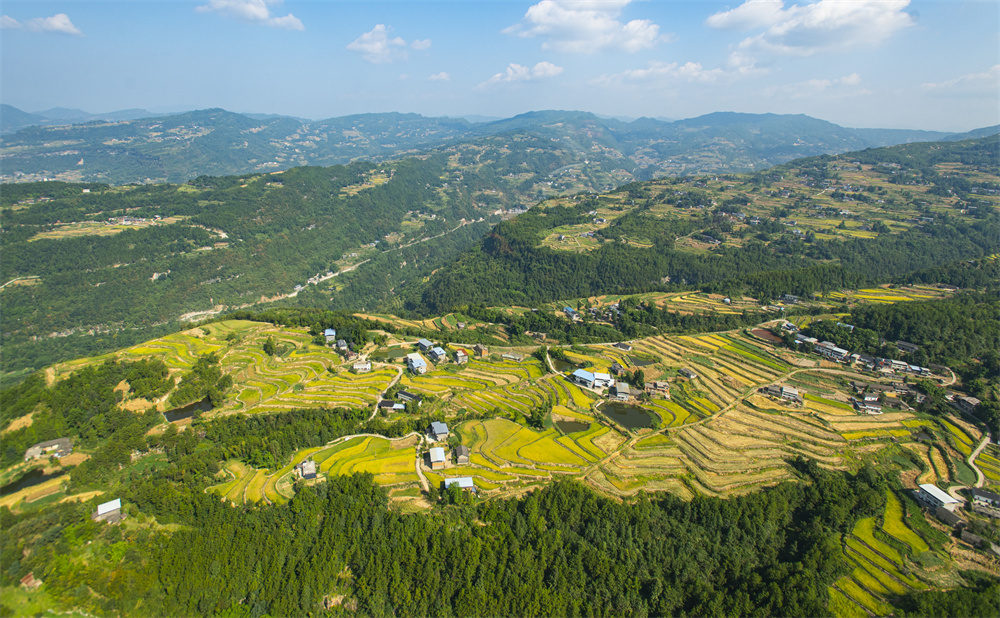 层层梯田披上“金黄衣”。记者 冉孟军 摄