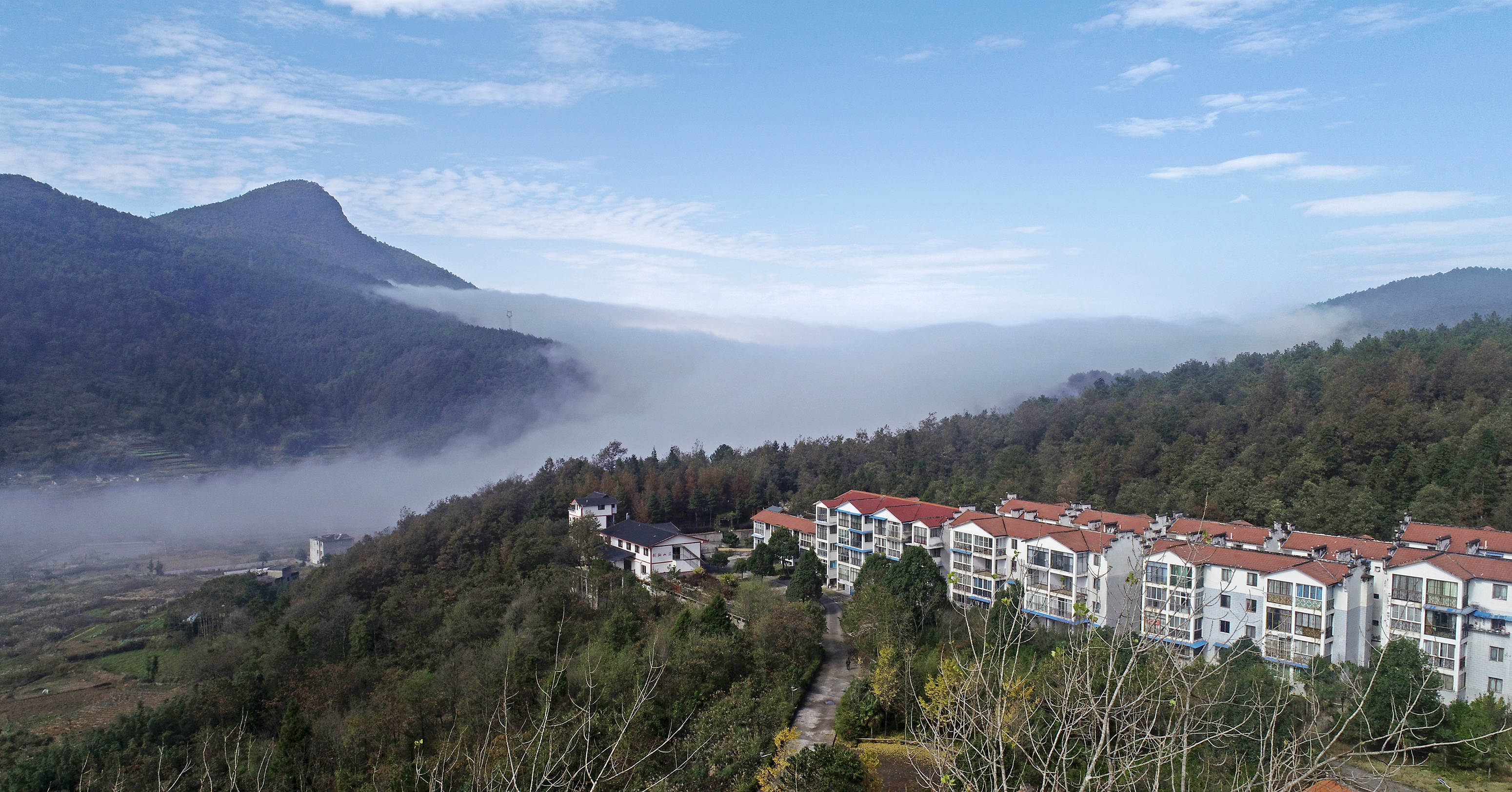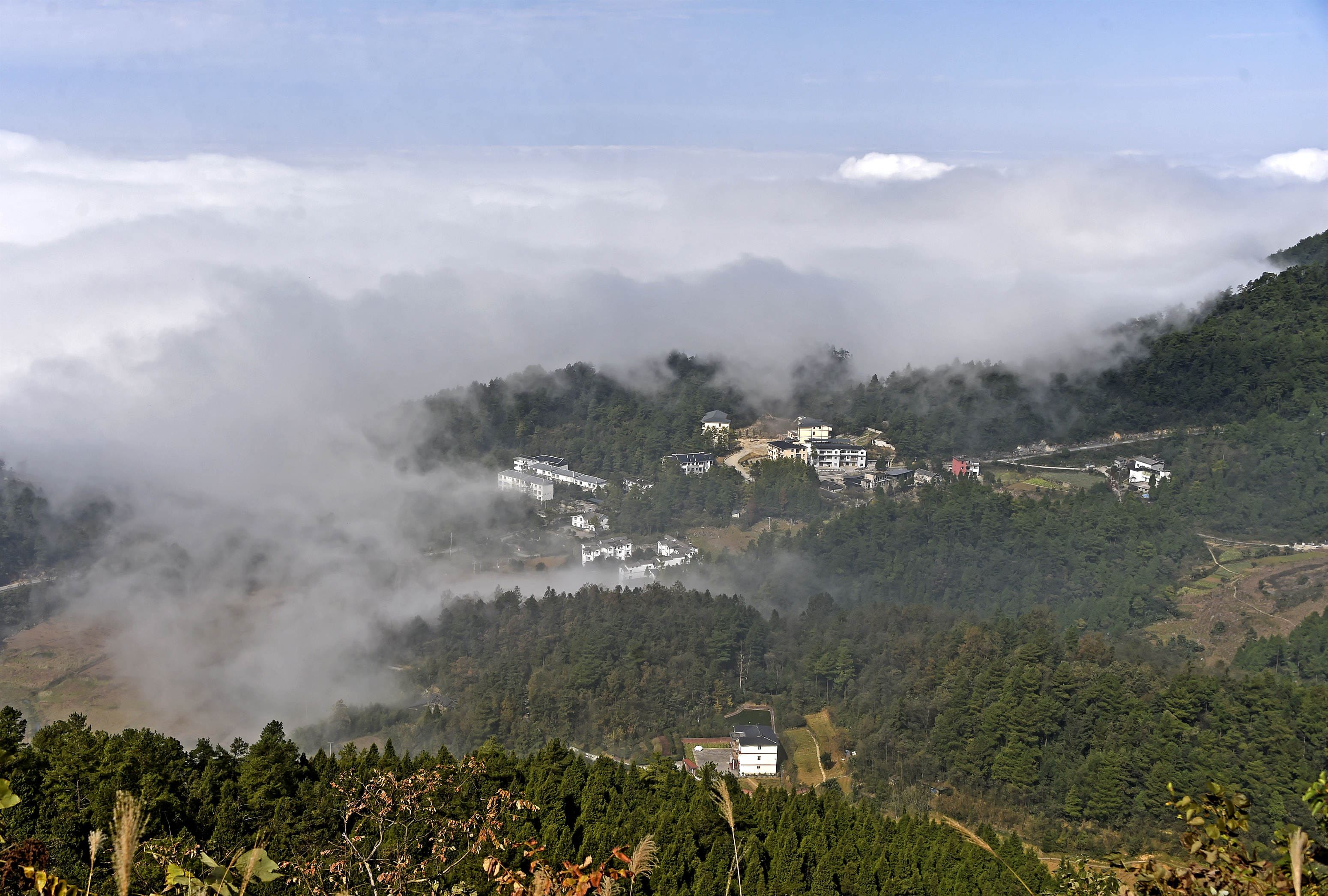幽静的村庄在云海下显得和谐而美好。黄河 摄