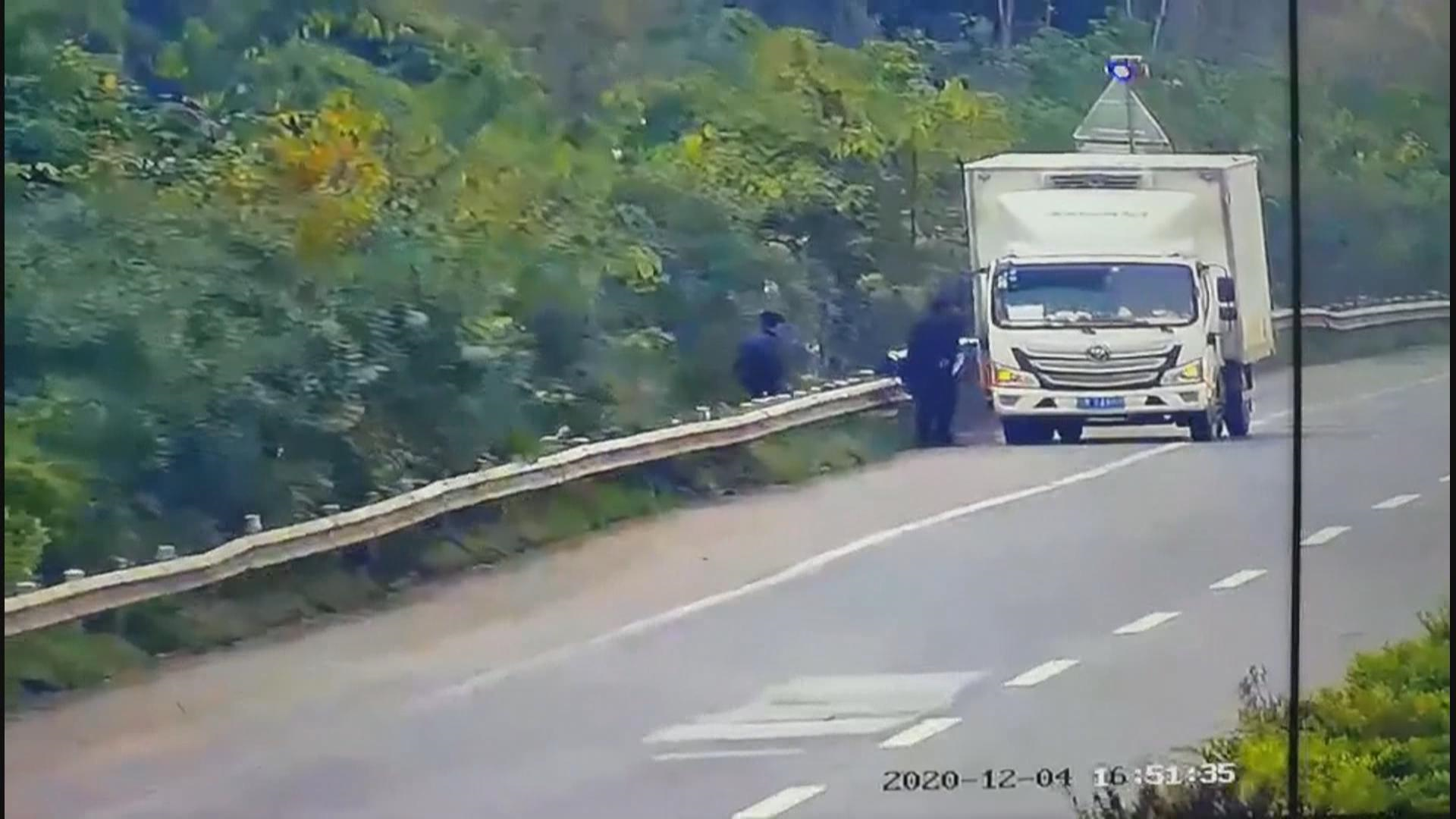 公共场所视频画面显示,12月4日下午4点50分左右,一辆白色箱式货车直接停在了应急车道上,没过多久有三名男子穿过旁边的护栏来到车旁,其中一名男子上了车。这一幕被抓拍后推送给了附近的巡逻人员,巡逻人员立即上前查看情况。