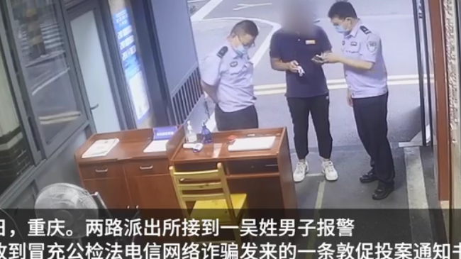 7月27日,渝北区公安分局两路派出所接到一吴姓男子报警,称收到了一条敦促投案通知书,怀疑遭遇了冒充公检法电信网络诈骗。出于职业敏感性,民警判断这并非一起普通的事件。力求稳妥,民警让吴某先到派出所了解详情。