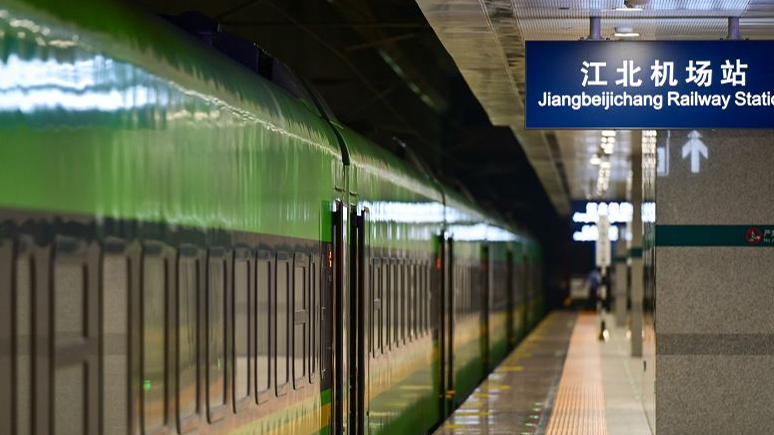 火车驶出江北机场站 包亮摄