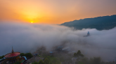 重庆涪陵:美心红酒小镇迎深秋首场平流雾 高峡平湖绘就“云端仙境”